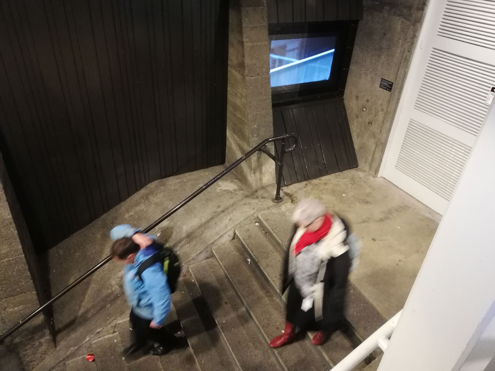 Beam Splitting (2017) installation view by Mark Williams, Masons Screen, (July–August-2019), people passing by