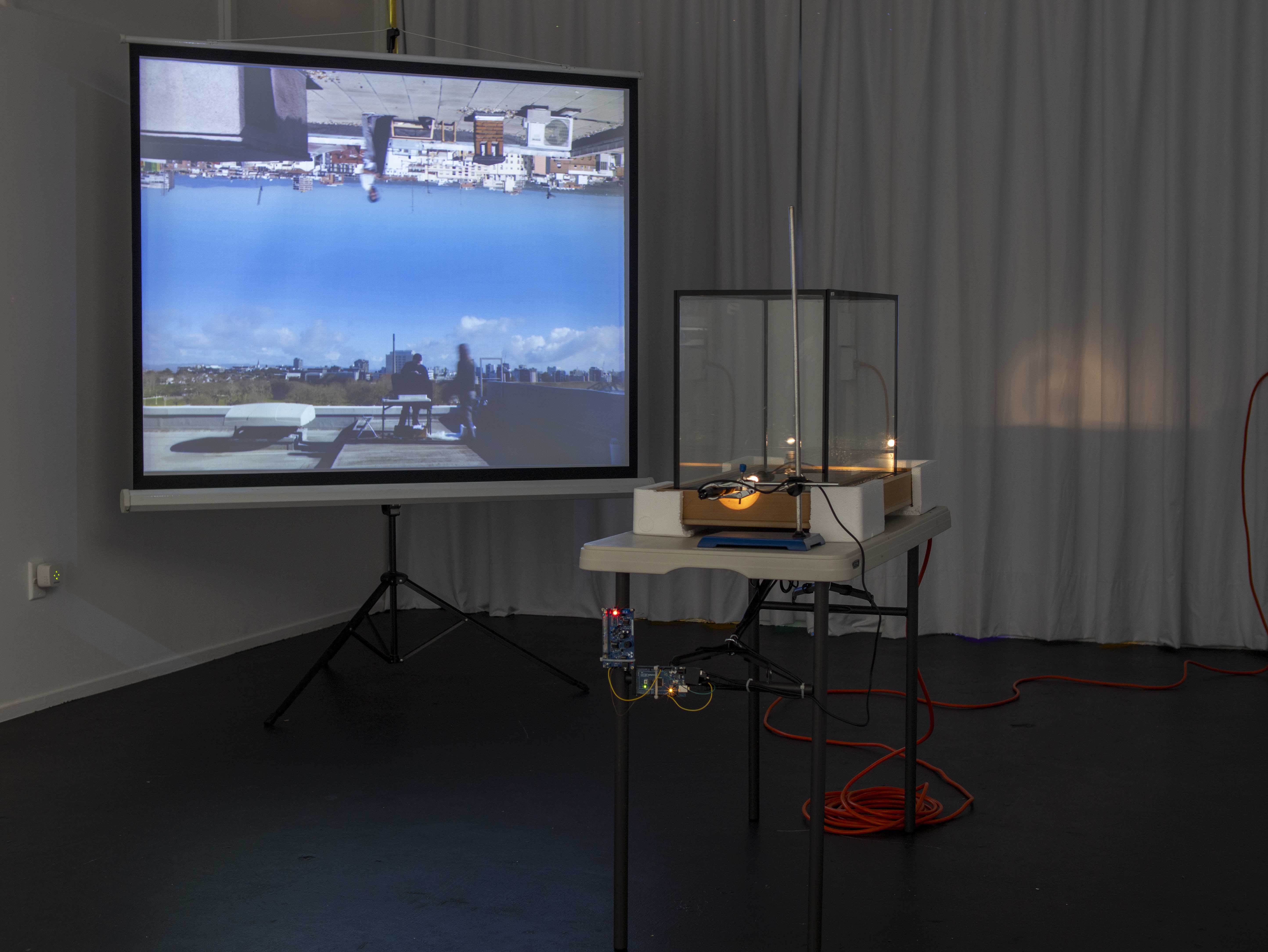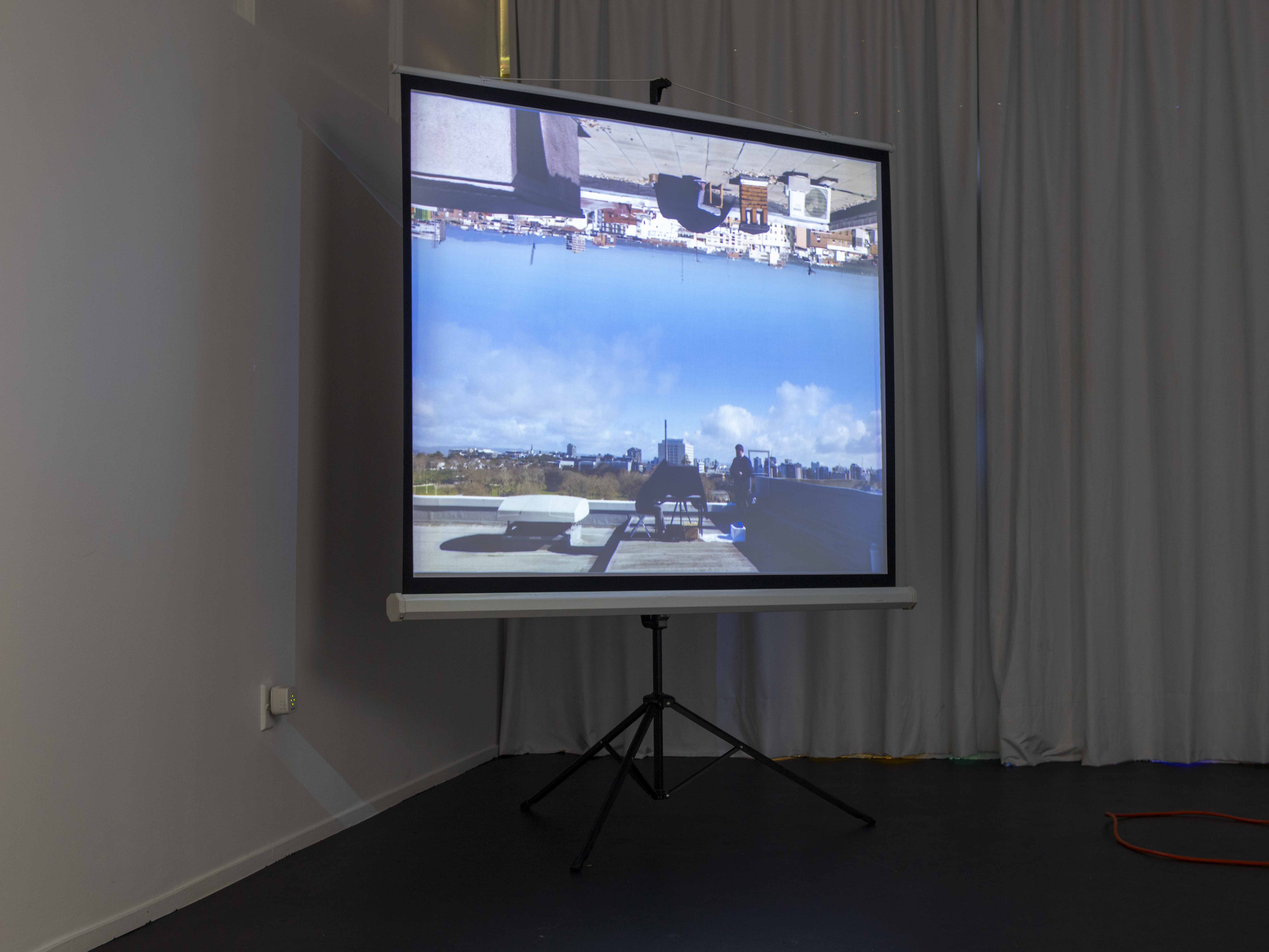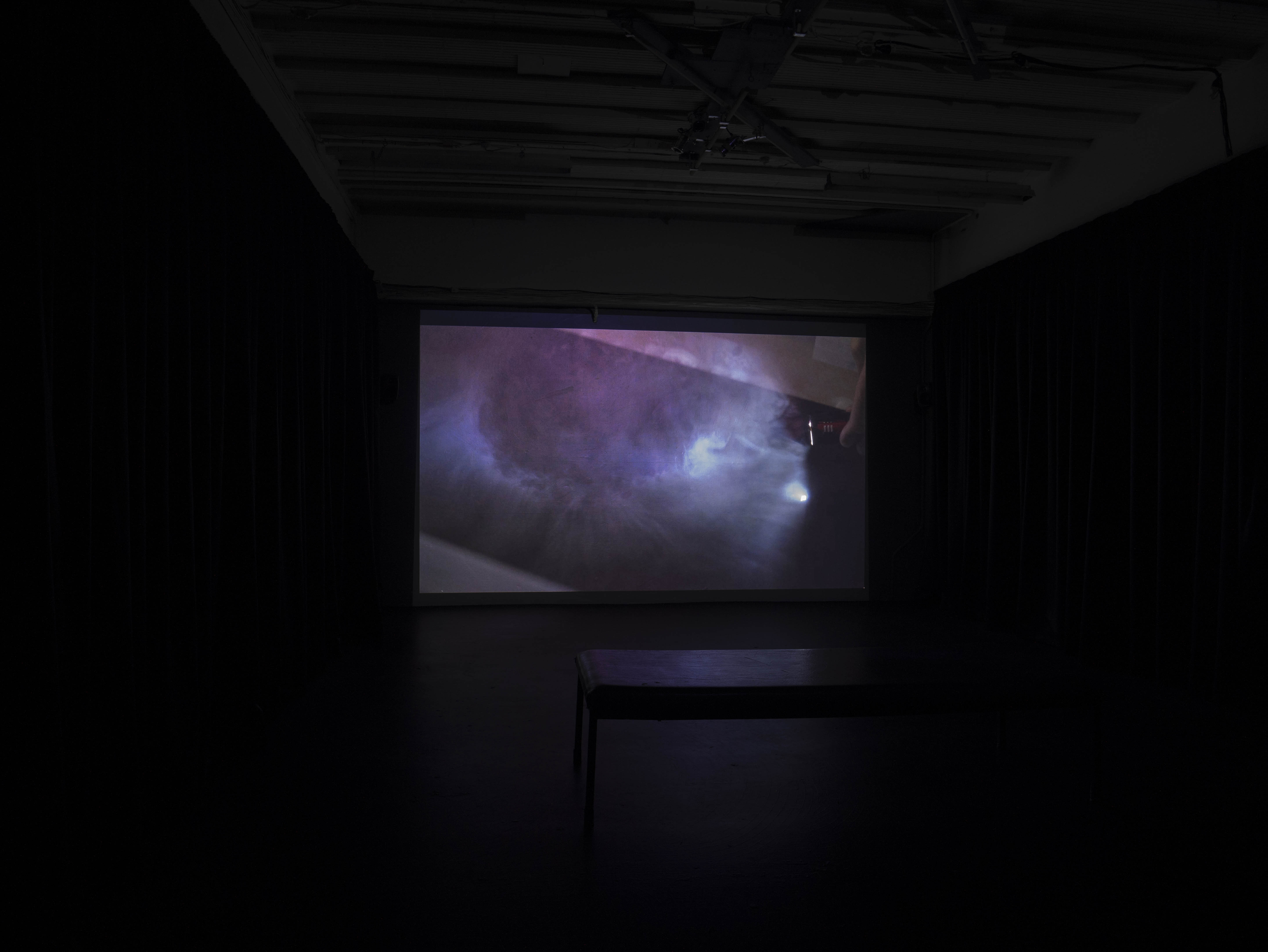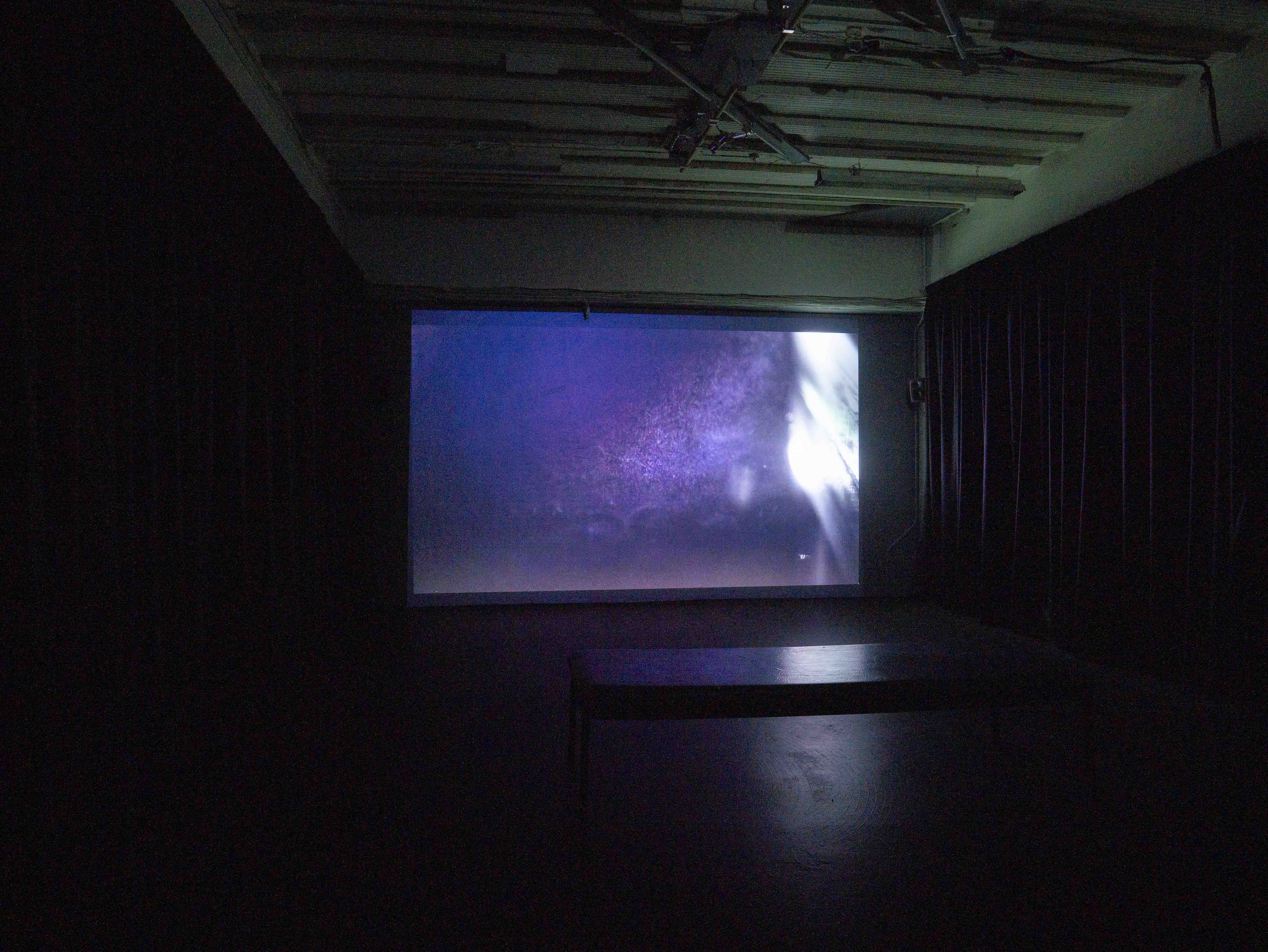 Cloud chamber observations made on the roofs of Fonte, Madrid and Auckland Museum, Tāmaki Makaurau. Single channel video projection, projection screen, stereo sound. 31 minutes 54 seconds.