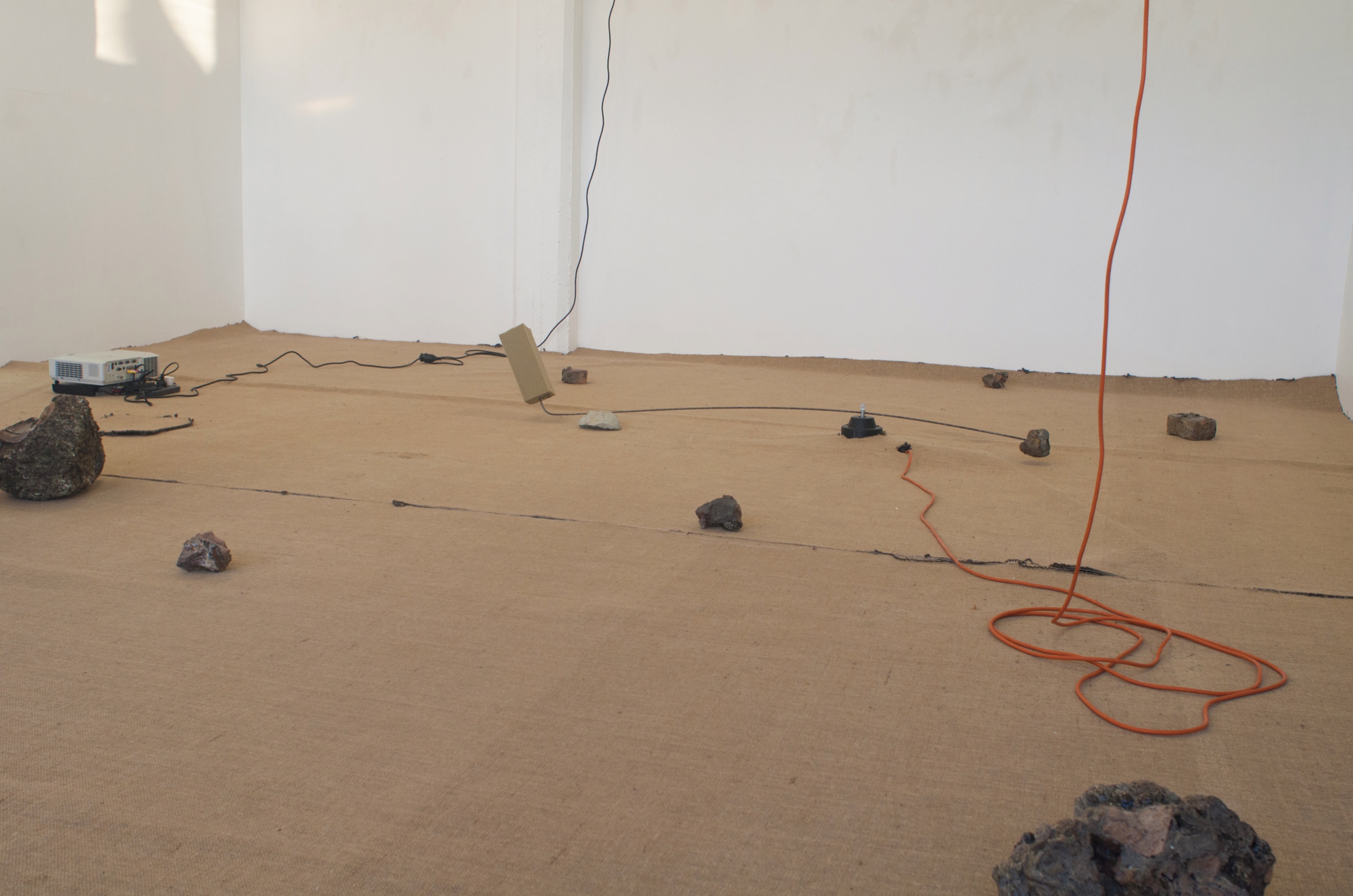 For the installation Crystallising Universe (an iteration of the Channels project), experiences in and around the space were recorded for a week before the installation was open to the public. These experiences feed back into the work, predominantly through a spoken text titled Motion of a Particle World, 2016. The movement of winter light; rain coming in through the leaky windows of the building (the floor had to be mopped twice daily); the foreclosed department store Forlongs poetically positioned across the street and slightly concealed by the thick branch of a large tree so that it almost read forlorn; the disorder of the gallery's storeroom-come-office; all became entangled in the experience of the work.