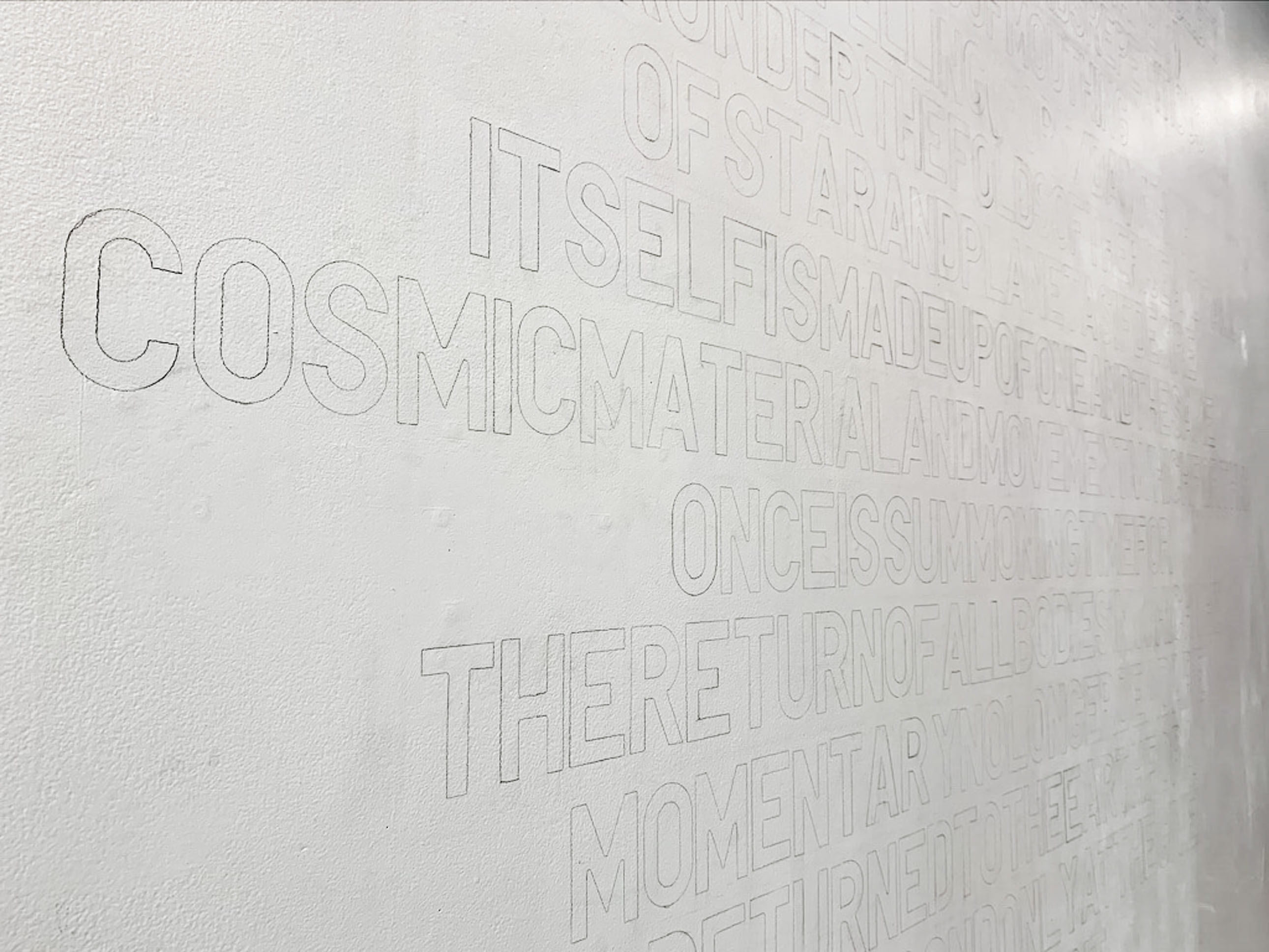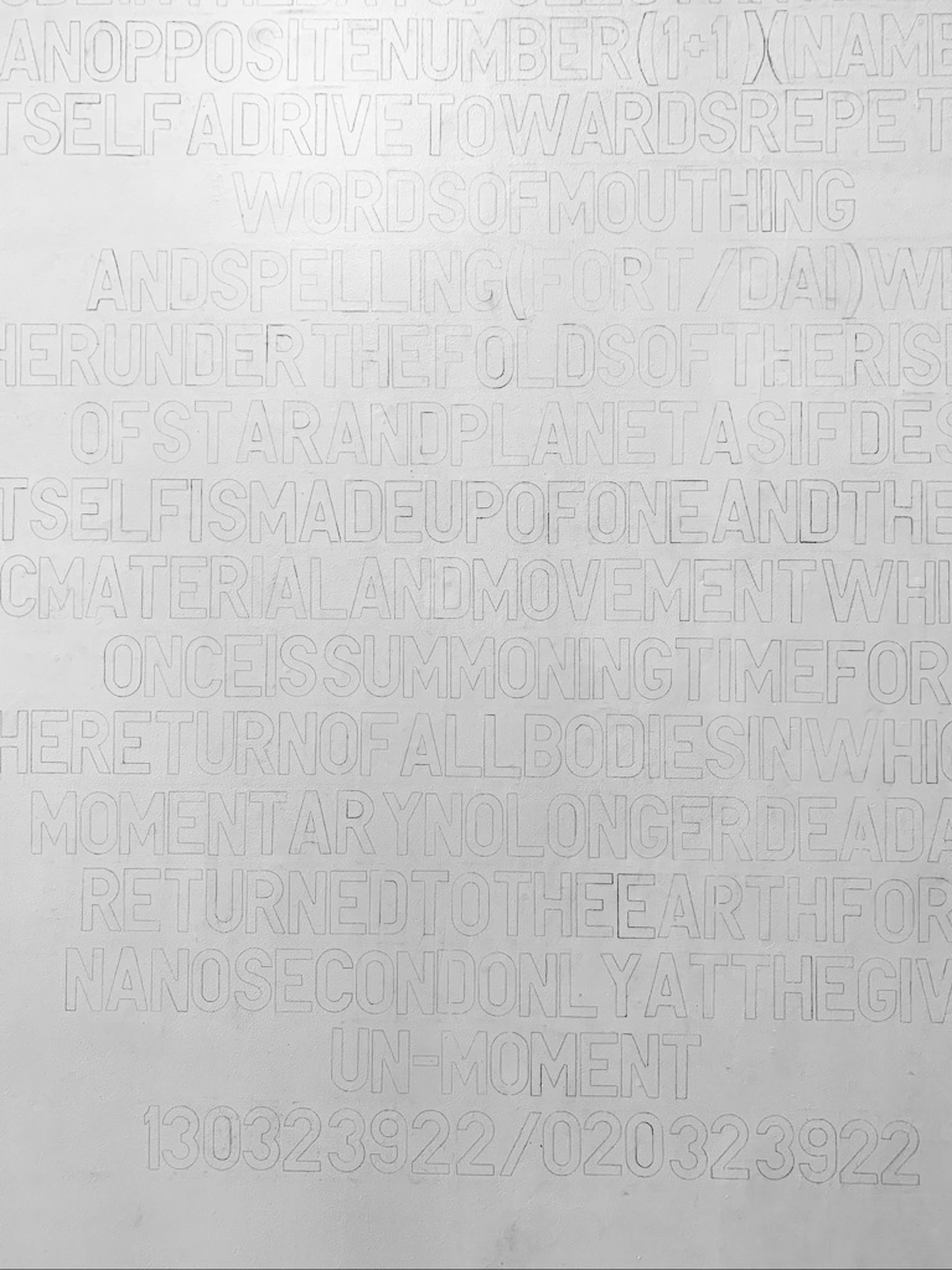 A Spell on the Equinox, 2022, wall drawing, graphite pencil on white emulsion, 3m (approx).