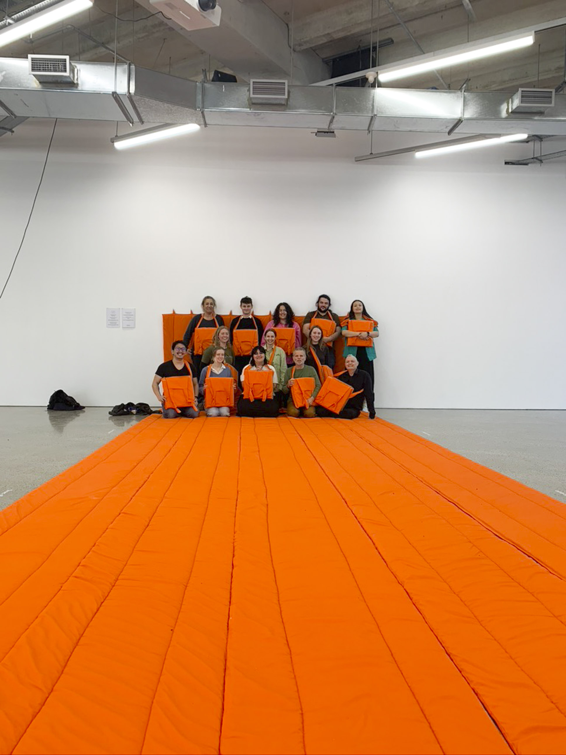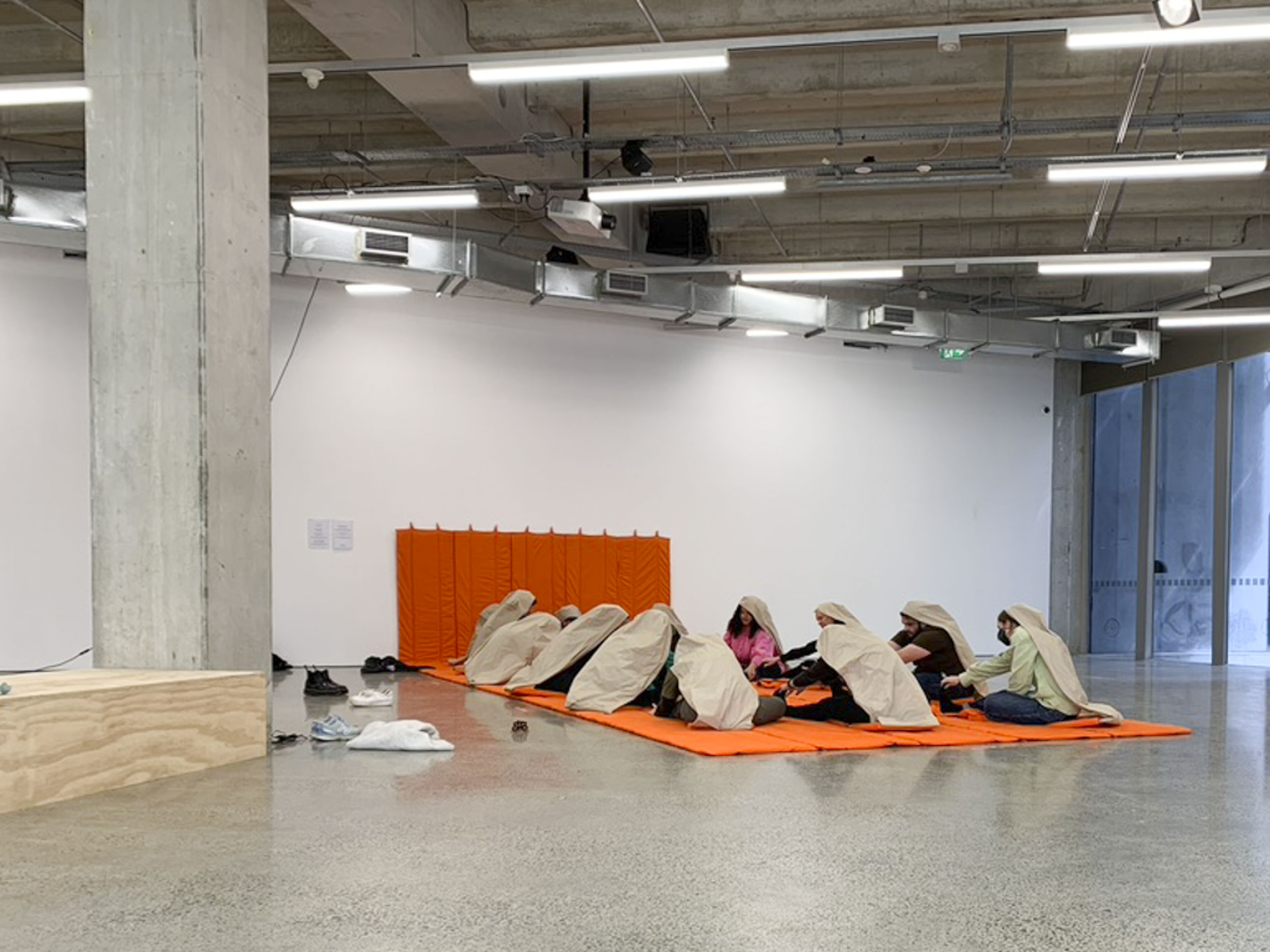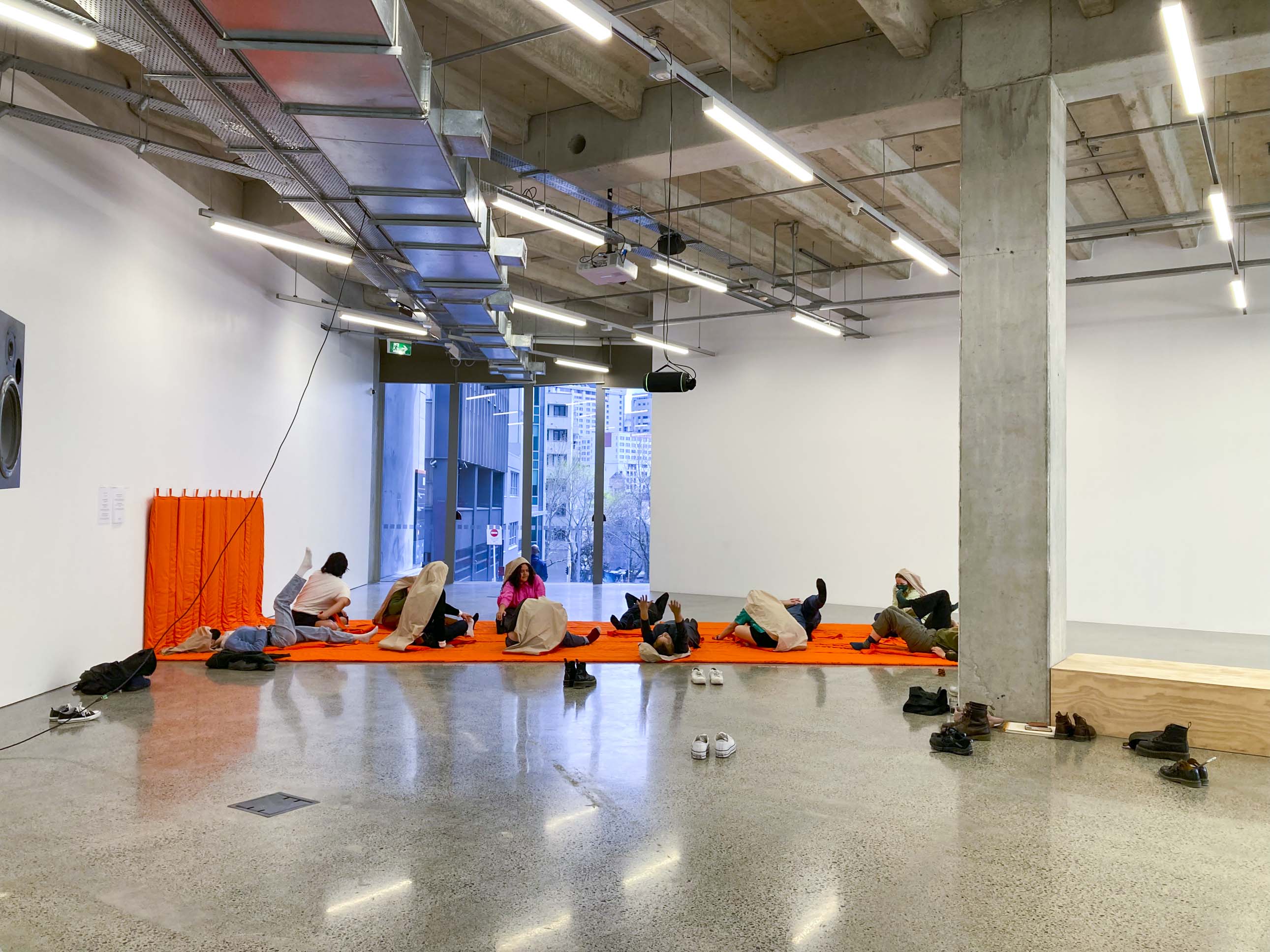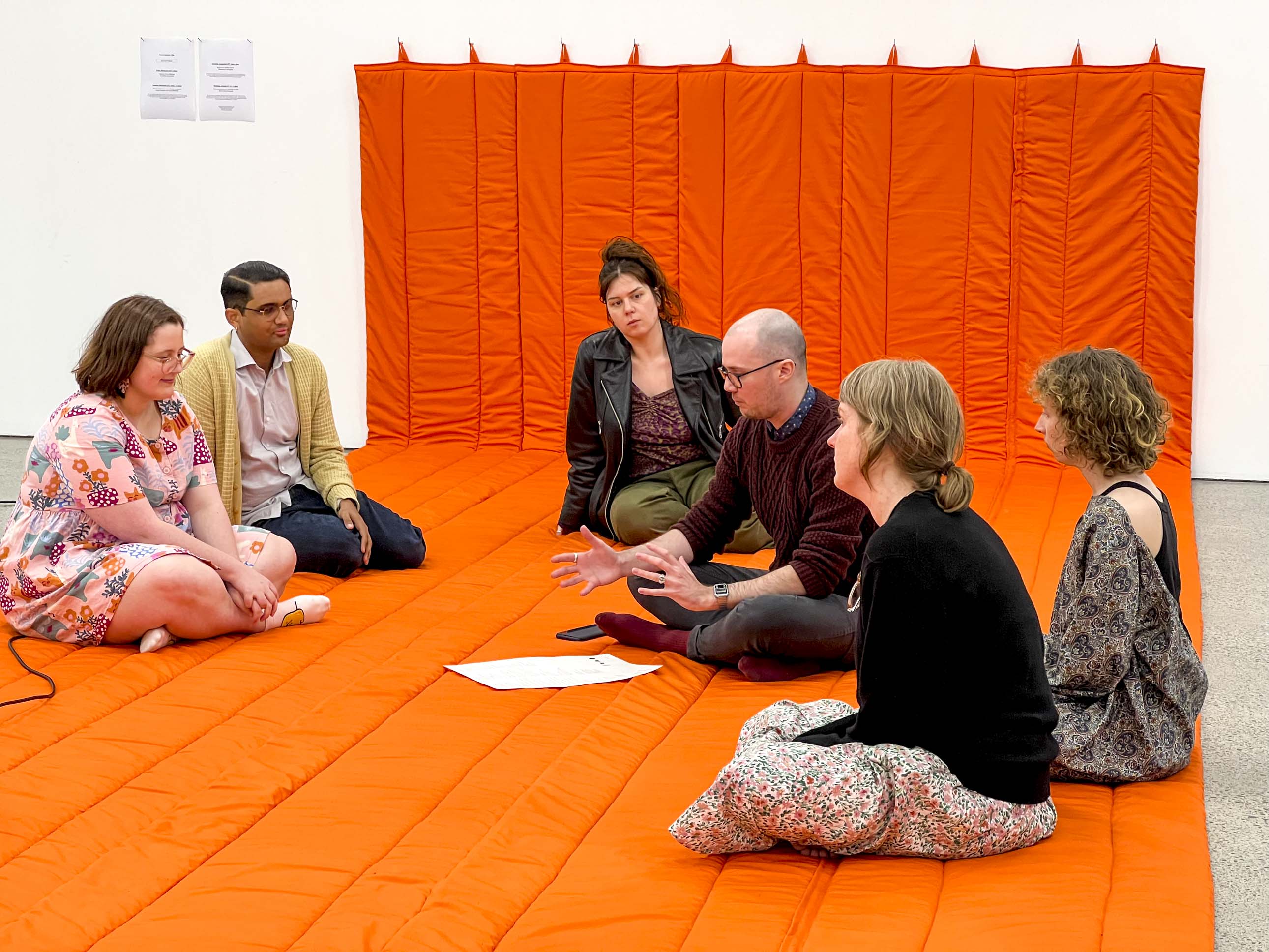 The final Equinox zoom meeting for the project. This took place on Friday 23 September at 1.03PM (NZST) marking the 2022 southward (vernal) Equinox. Participants met in Tāmaki Makaurau/Auckland and assembled on the large orange quilt/mat titled "Conversation Mat" in ST Paul St Gallery. Those overseas joined on zoom, marking the opening of the exhibition.