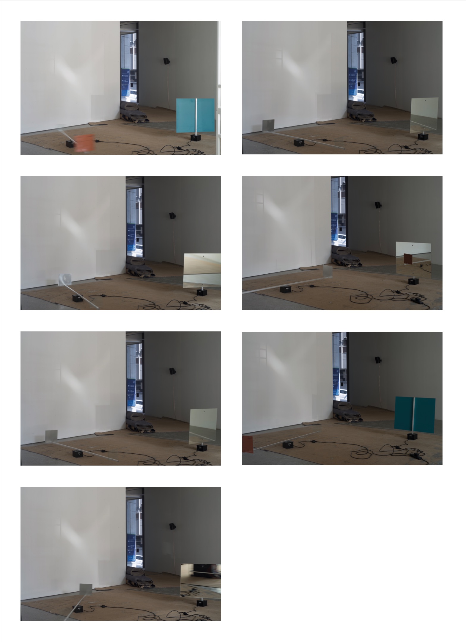 Secrets and the unsaid are embedded in the archive. The strategy of installation-archive modulates the fabric of the field by shifting orbits and proximities. Motifs are reproduced again and again in the installation, cut and spliced together to create new situations and narratives. The installation begins to act out the formation of ideas through the images’ re-appropriation, reinvention, and return; challenging the idea of post-production as an after-thought, and generating potential for ideas to be repurposed and recycled. This allows the meeting of multiple types of images across disparate sites to echo and misdirect languages established in these situations. Concurrently, objects and images are scattered across the space, drawing distances between spaces and times—drawing from and reproducing ideas and works from past installations whilst intersecting the present anew.