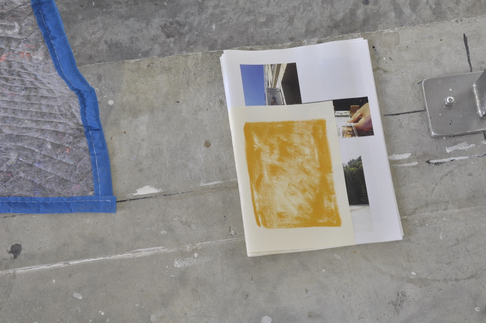 One of the strategies of Knowing You’re Wrong (2014) was to demarcate a series of zones by painting a selection of walls yellow. We then worked alongside/off this structure separately, all the while in constant communication. Earlier this year we developed a series of texts in the form of letters. These were written almost exclusively on long train trips, while traveling between major cities. We were interested in writing in a conversational manner and gathering images from a multitude of places, as a means to casually record and unpick ideas and sensations experienced at the time of writing. Through conversation we can explore and question the points of difference and similarity in our shared memories.