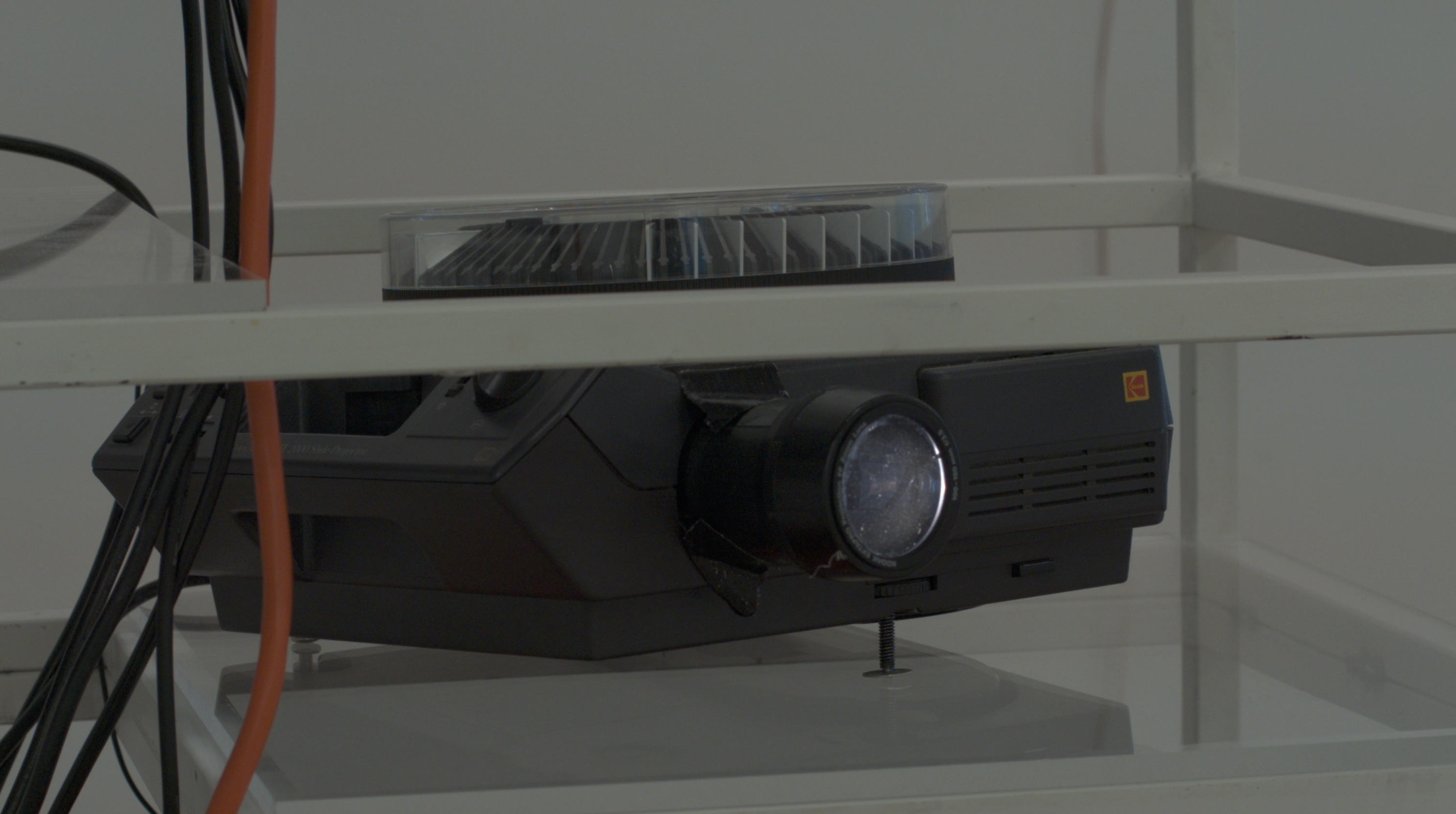 Secrets and the unsaid are embedded in the archive. The strategy of installation-archive modulates the fabric of the field by shifting orbits and proximities. Motifs are reproduced again and again in the installation, cut and spliced together to create new situations and narratives. The installation begins to act out the formation of ideas through the images’ re-appropriation, reinvention, and return; challenging the idea of post-production as an after-thought, and generating potential for ideas to be repurposed and recycled. This allows the meeting of multiple types of images across disparate sites to echo and misdirect languages established in these situations. Concurrently, objects and images are scattered across the space, drawing distances between spaces and times—drawing from and reproducing ideas and works from past installations whilst intersecting the present anew.